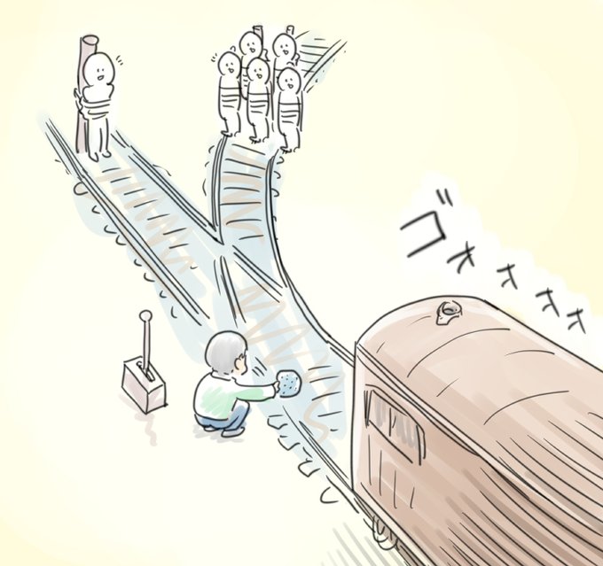 トロッコ問題 どっちか犠牲にするって選択じゃなくて他の答えを導き出したいですね 自分なら置き石してみる ワンチャンみんな助かる 逆に皆死ぬかもしれんけど