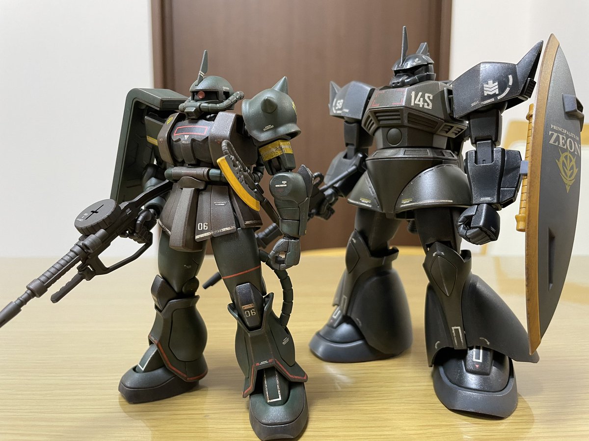 ドダイ完成しましたー ようやくグフとディスプレイ出来た。 片足立ちでも安定〜 製作動画も是非ご覧下さい。 youtu.be/a983s-VGB0M #ガンプラ #ガンプラの画像を貼るとRTされると聞いて