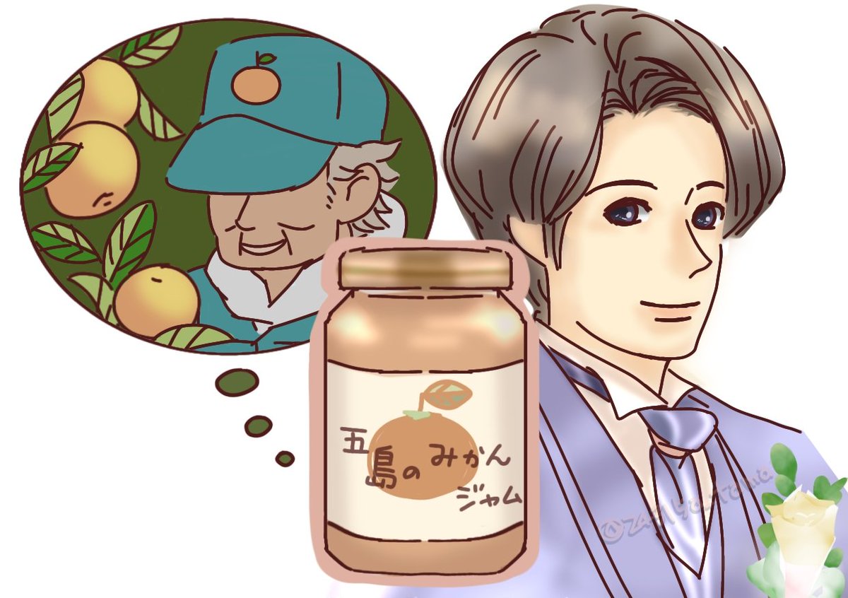 #舞いあがれ絵 ウエディングケーキに祥子ばんばのびわジャムを使ってるそうなので 引き出物にはみかんのジャムが入ってたりして…な空想 貴司の知りあいもきっと祝ってる…