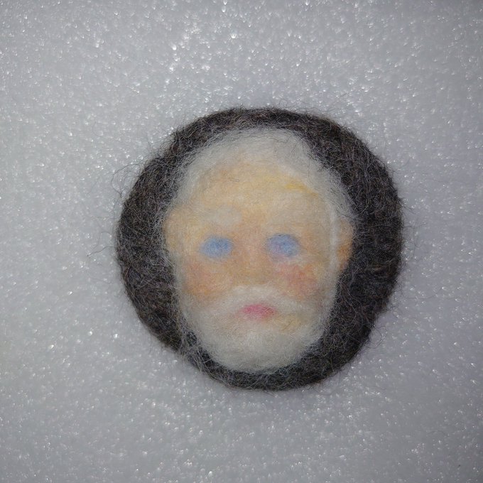 なんか 全体的にモヤッとしてるけど…😂 #羊毛フェルト でロジャさんの顔 作ってみた😆イメージはアイコンのロジャさん…だったんだけど なかなかうまくはいかないね💦 白目を作るの挫けたので…😵また 出直しますわ🤭