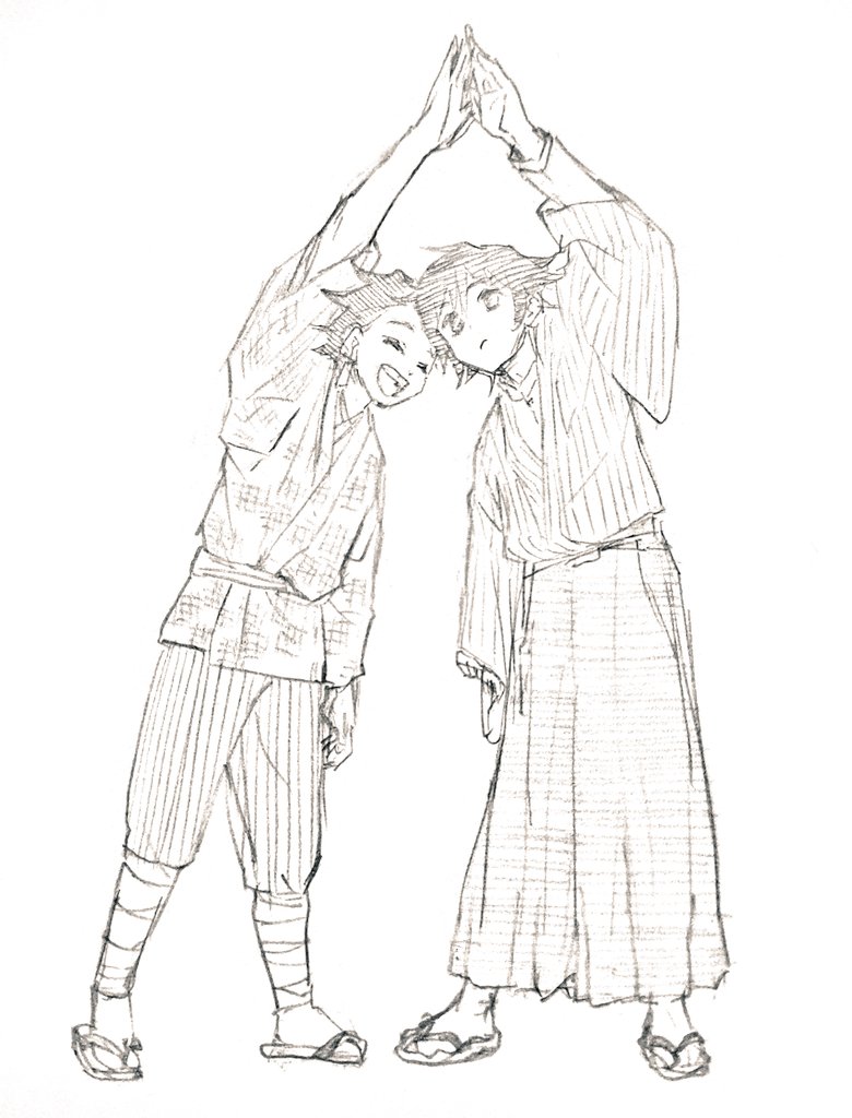 完結後の兄弟弟子を前向きにらくがき 明るくいこう…明るく…めっちゃ泣いたけど… #鬼滅の刃イラスト #らくがき
