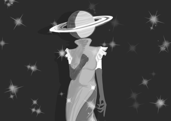 1 5 結構頑張って色塗ったのに、保存したら何故か白黒になってしまった土星嬢 #異形頭 #オリキャライラスト 21/11/24 22:35