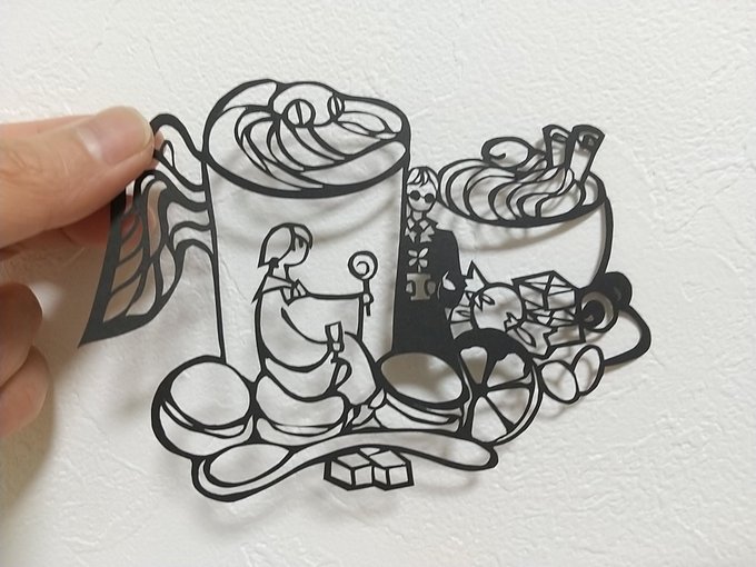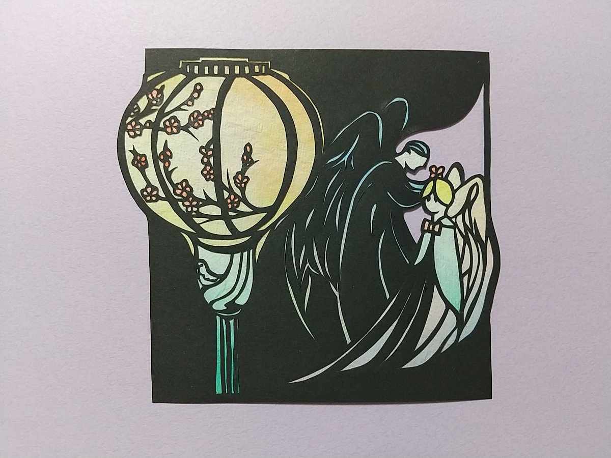 切り絵、2月バレンタイン、3月ぼんぼり #切り絵 #GoodOmensFanArt