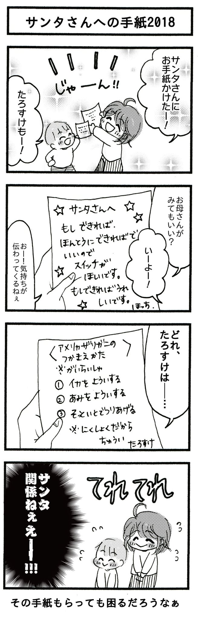 いよいよクリスマス間近ですね!🎄✨ 子ども達が毎日「オラわくわくしてきたぞ!」状態です(笑) 過去に子どもたちが書いた「サンタさんへの手紙」4コマ再掲です☺️ #4コマ漫画 #育児絵日記 #漫画が読めるハッシュタグ