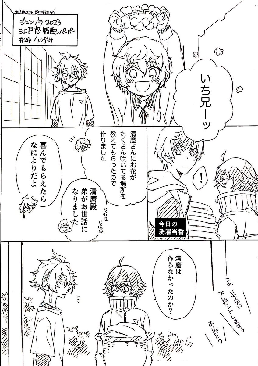 20 130 ジュンブラ前日にホテルで描き上げた麿水💍無配ペーパー漫画です。ご査収ください (分けた方が読みやすいかなと上げ直しました!先のに反応いただいた方ありがとうございますすみません…!) 23/06/27 11:09