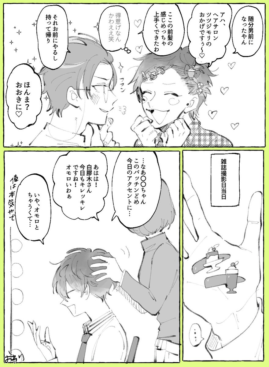 #ささろワンドロライ お題/ヘアアレンジ こうして、雑誌撮影のたびにアクセントとして謎のパッチンどめをコーディネートに強引にねじ込んでこようとするモンスターが誕生したってワケ😉🍮
