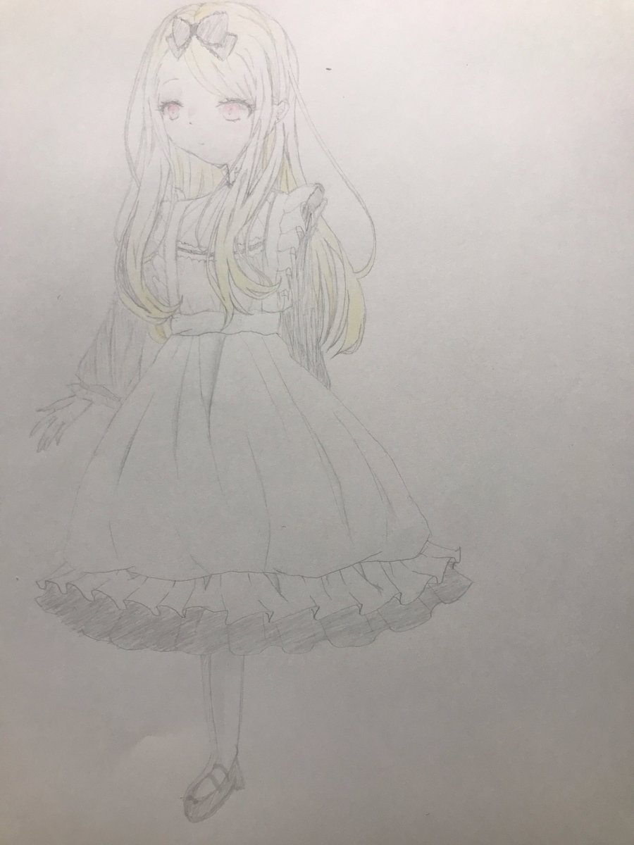 #人狼ジャッジメントイラスト 久しぶりの色鉛筆!あなろぐ!! 写真の撮り方を忘れたなぁ( -᷄ ω -᷅ )ウッスイナァ…