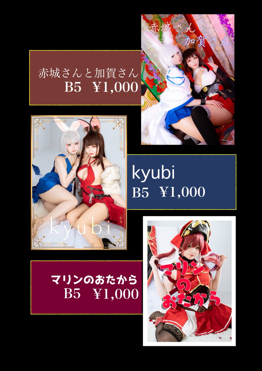 ということでこちら!【宣伝】 夏コミでコスプレ写真集新刊でます! ☆アズレン赤城加賀☆ドレス版☆宝鐘マリン☆の3種になります! 以前リプしてもらった事前の取り置き分と、現地分の後、残ったら通販(ブース?)します! 応援よろしくお願いします🥺🤲❤️ twitter.com/i/web/status/1…