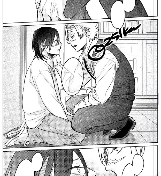 今月末に🐯さんにお願いしている薄い本のサンプルなのです。上下の2冊になる予定で、今回のは上(前編)で2人がくっつくまでの話で全年齢本です。後編はその後の話で、年齢指定本になります。 (実玄)