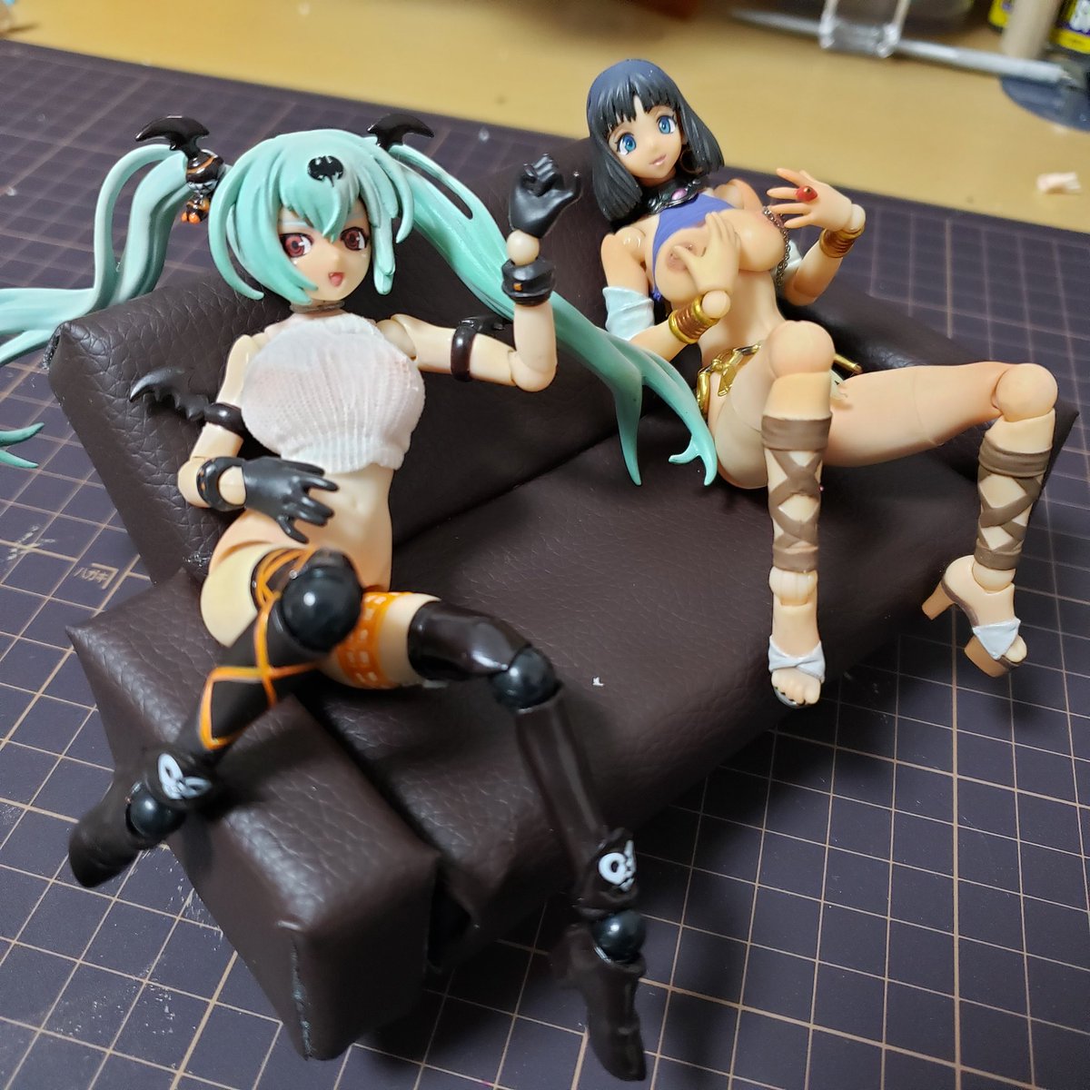 ソファーがで、できたがサイズへんだぞ まぉヨシ! #リボルテッククイーンズブレイド #メガミデバイス