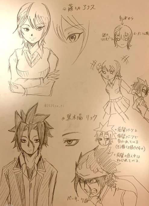 0 0 久しぶりにオリキャラ落書き 考えてたの中学・高校の時だから設定が厨二病満載で笑う🤣 23/06/27 21:23