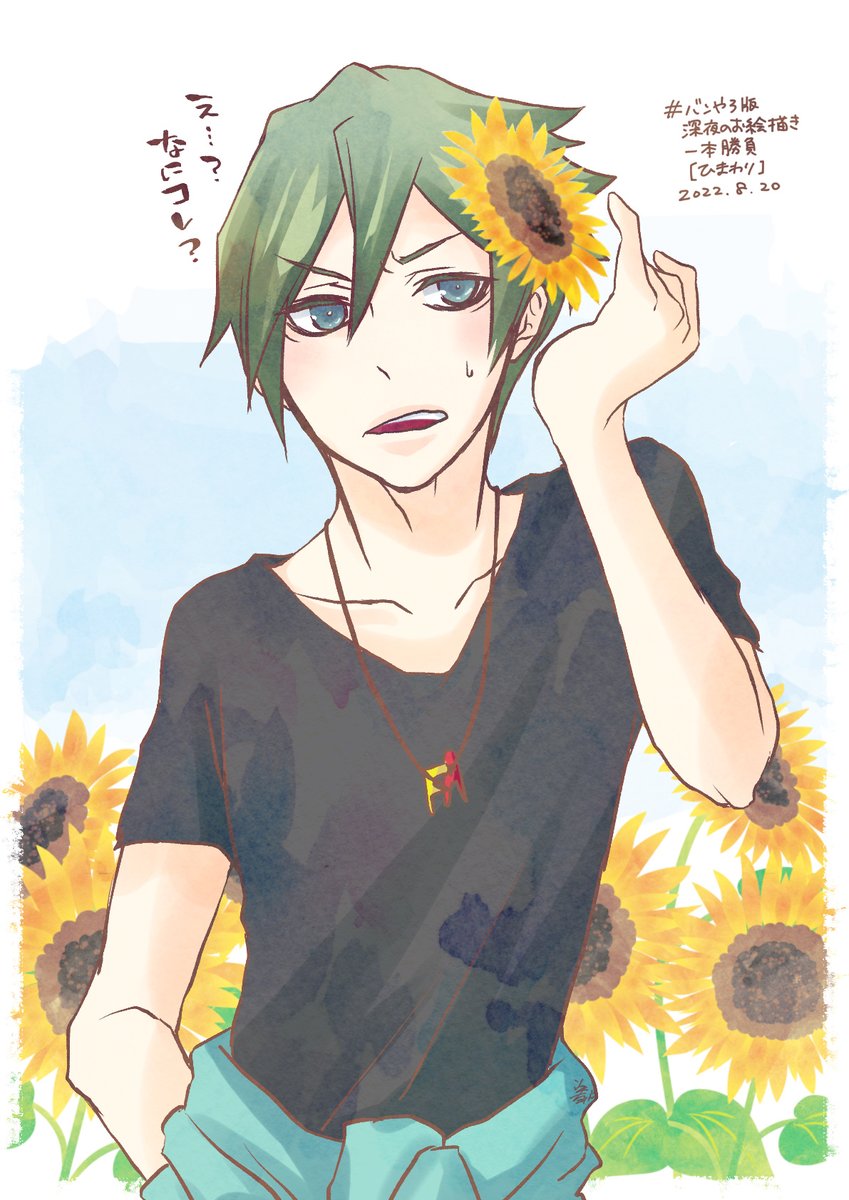 7 28 お題『ひまわり』 月と太陽 (フリー素材使用) #バンやろ版深夜のお絵描き一本勝負 22/08/20 23:04