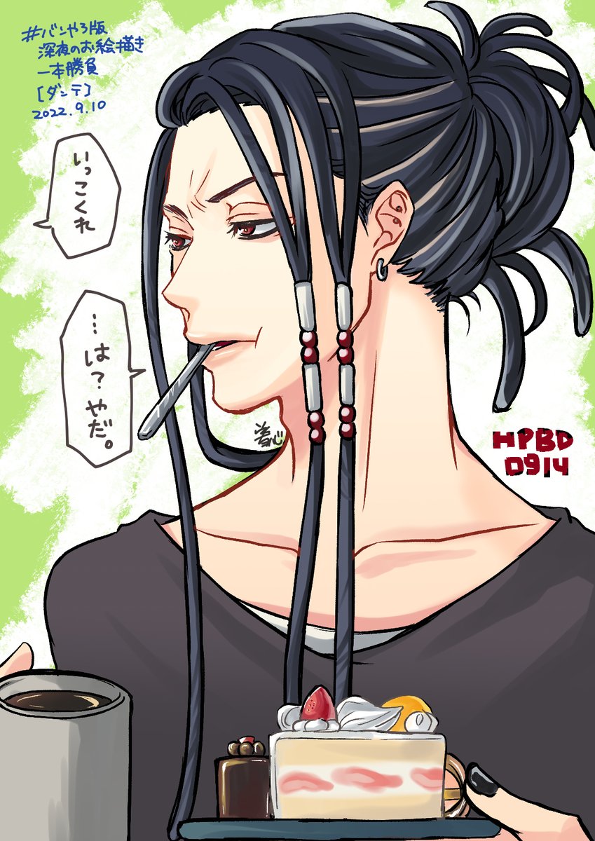 17 41 お題『ダンテ』 遅刻&1h超え失礼します。。。 …あのナリで実は甘党(だったらいいな😊) #バンやろ版深夜のお絵描き一本勝負 22/09/11 00:50