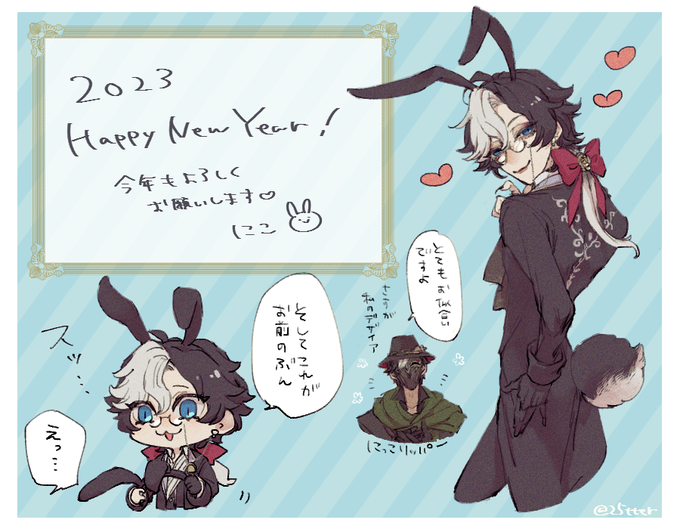 52 208 描き初め🐰 投票ありがとうございました!勝手にリパジョゼにしちゃった 今年もよろしくお願いします🙇♀️ twitter.com/25tter/status/… 23/01/02 11:24