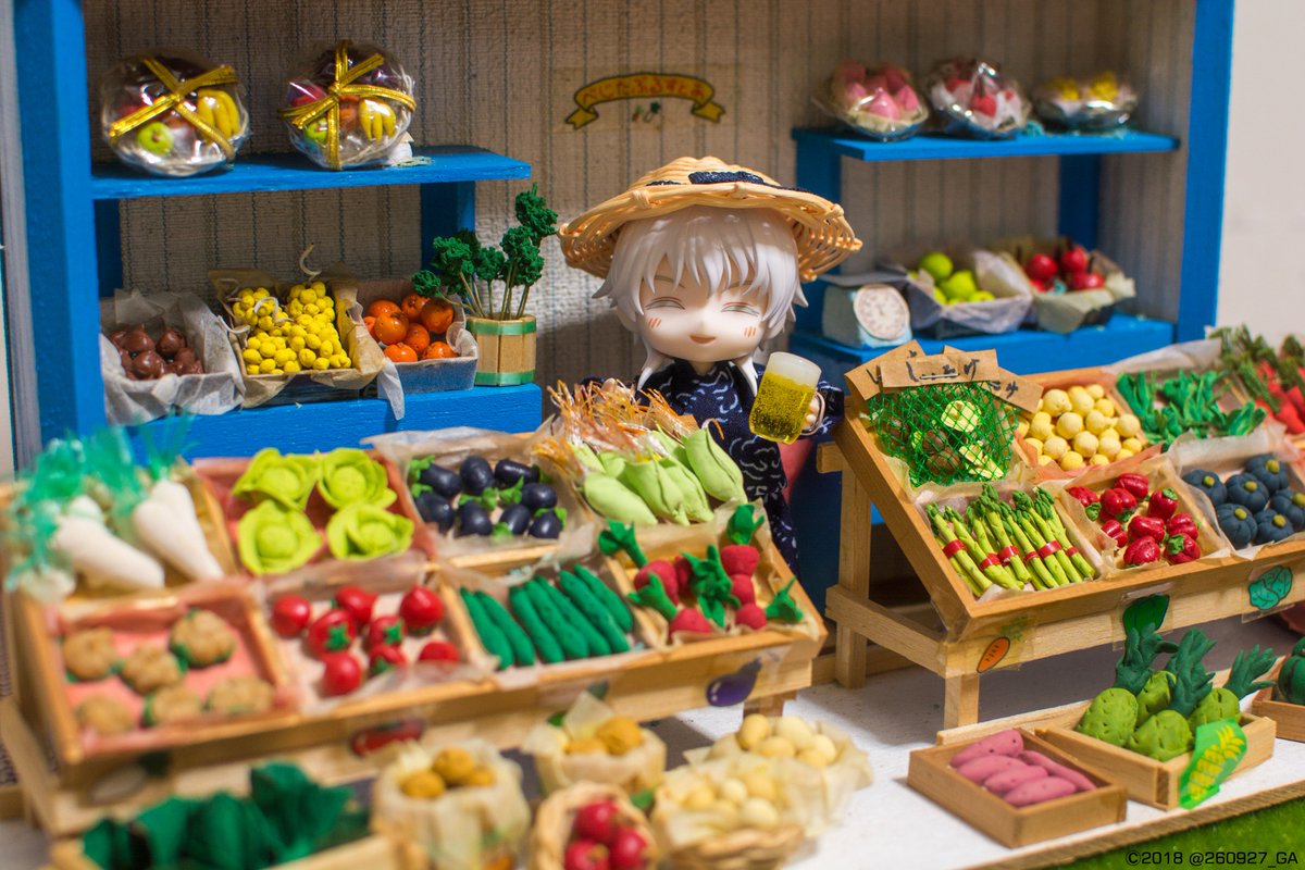 120 416 お…うっかりビールを飲んじまったぜ… 本丸直送の野菜達だ! どれも新鮮だぜ♪ ん? トウモロコシか。まいど! #オビツろいど #オビつる #ねんつる 18/08/08 00:43