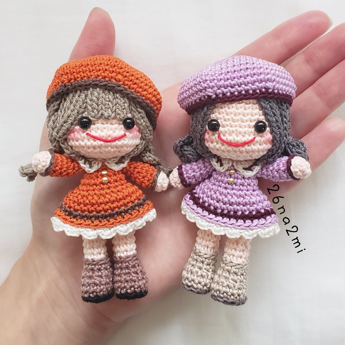 【宣伝】小っちゃいサイズの秋色ワンピースの子と異色肌っ子、BOOTHにて販売開始しました! よろしくお願いします🙌 ↓商品ページ↓ 26na2mi.booth.pm #booth_pm #あみぐるみ #編み物