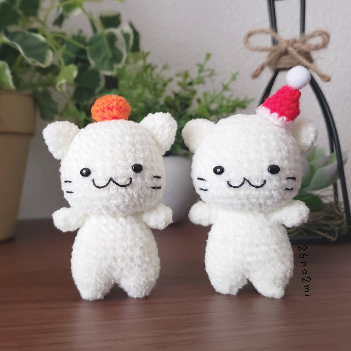 ねこ(概念)の冬ver.2種を今夜BOOTHに追加します!販売開始時刻は8時くらいかな?商品ページが用意できたらまたお知らせツイートします! #あみぐるみ #編み物