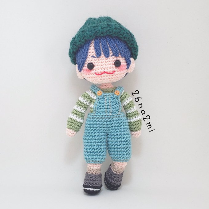 9 165 オーバーオールの子編みました!デニムっぽく見えるようにステッチ入れてみたけどどうだろう🤔ニット帽は着脱可能。オリジナルで男の子作るの久しぶりで楽しかった〜! #あみぐるみ #編み物 #なちょさん家 22/03/28 21:01