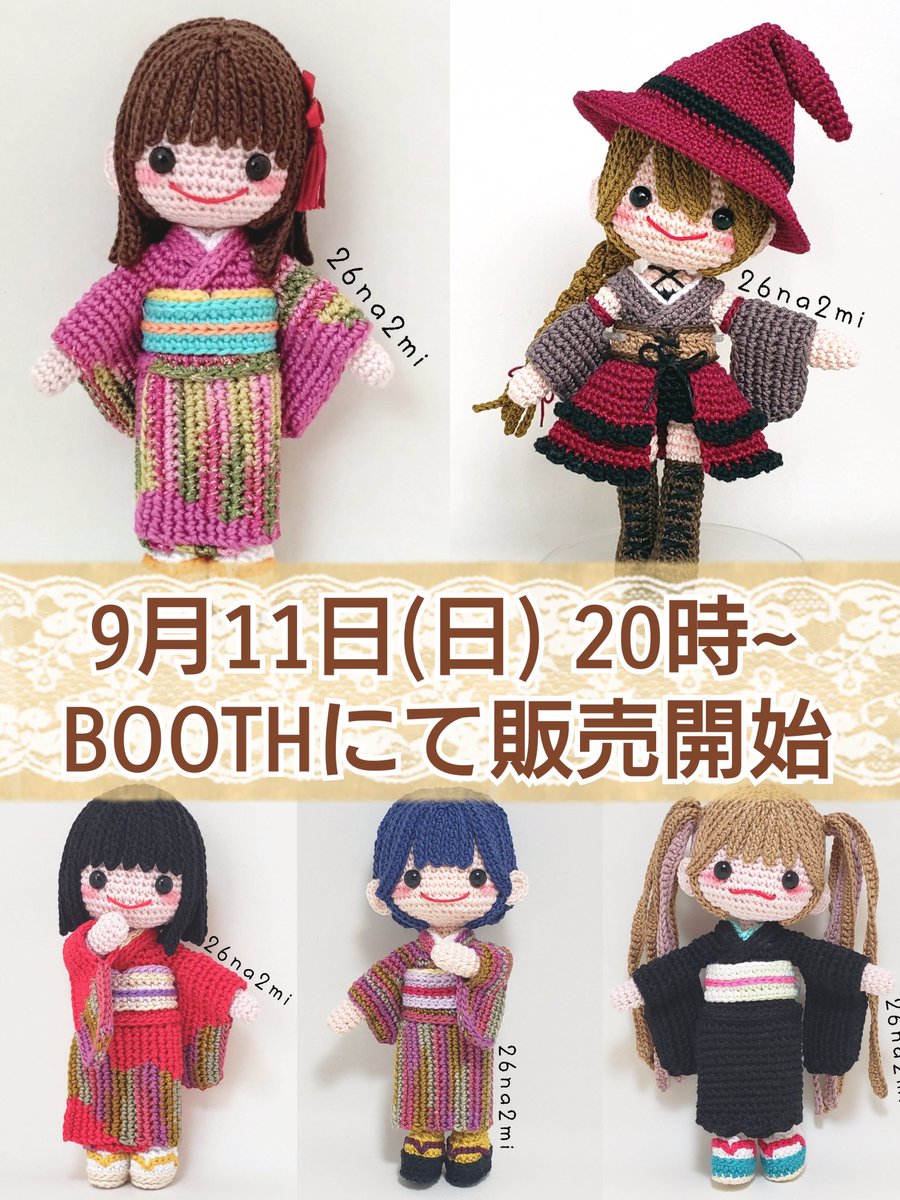 【通販のお知らせ】 明日、9月11日(日)20時~ BOOTHにて #あみぐるみ 5点販売します! よろしくお願いします! 商品ページはこちら↓ 26na2mi.booth.pm
