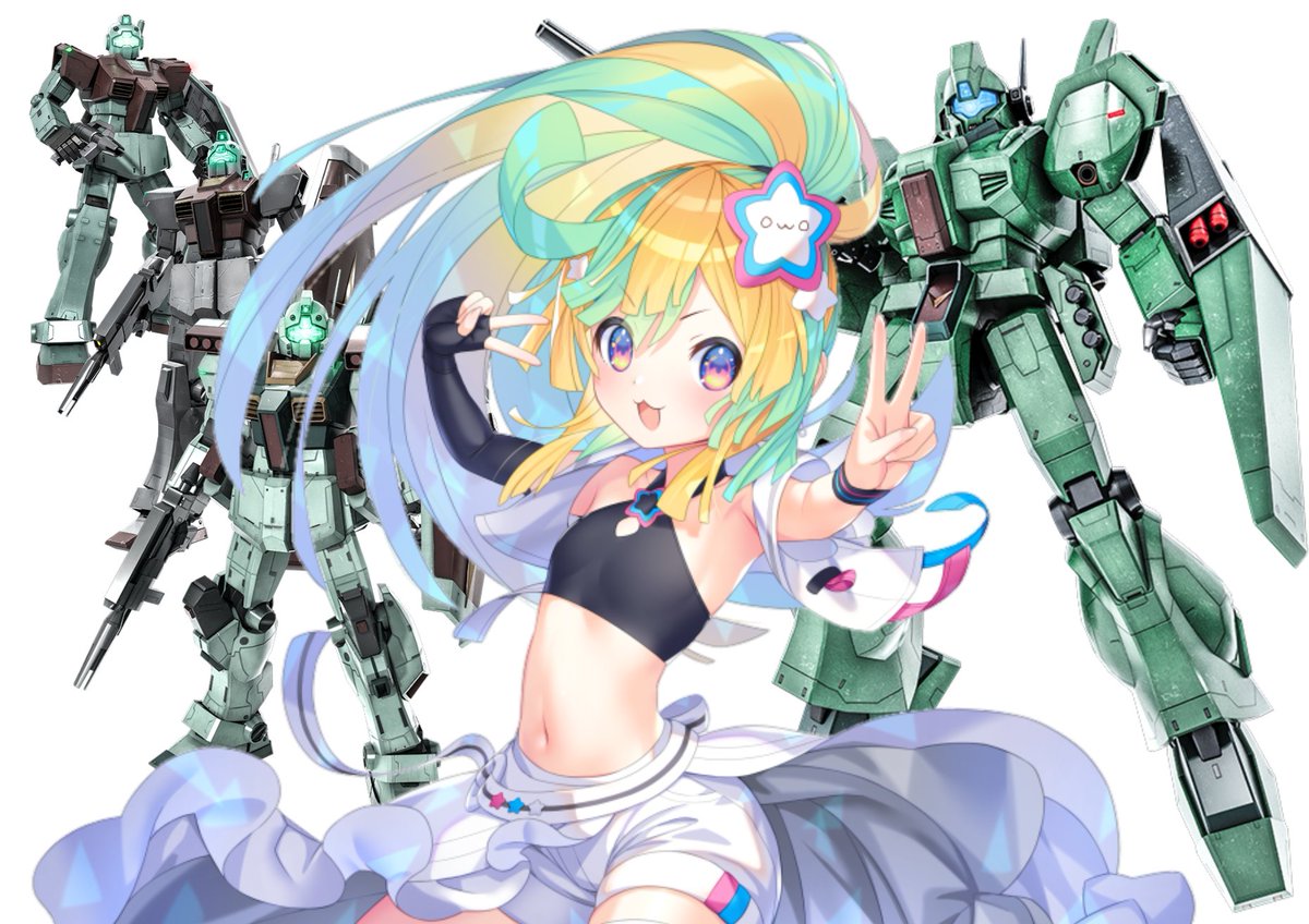 1 4 雑な貼り付け画像ですが、ジムに囲まれたはのちゃんです♪ 今度のバトオペ2の新機体が「ジェガン」確定なので、はのちゃんにはGETしてもらいたい機体! 「ジェガン」はジムIIIの後継機で、いちよう「ジム」の分類に入ってる機体? 30年間も長く使われ種類も豊富です♪ #天川はの #はのーと 21/03/24 01:06