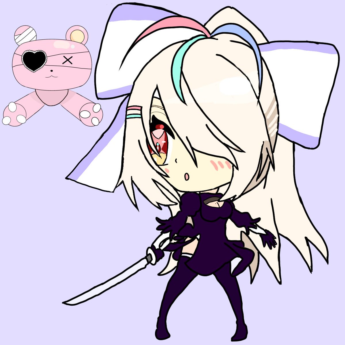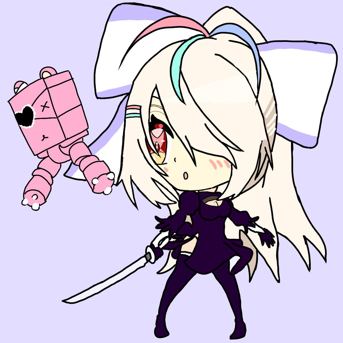 以前に描いたニーアオートマタの九楽とポットクマ野郎 そのクマ野郎をちょっとバージョンさせたきゅ♪🐤 まだベタ塗りだけど、コレから光沢や影をつけて、出来ればGIF素材にしたいきゅ♪🐤 #ライjpg
