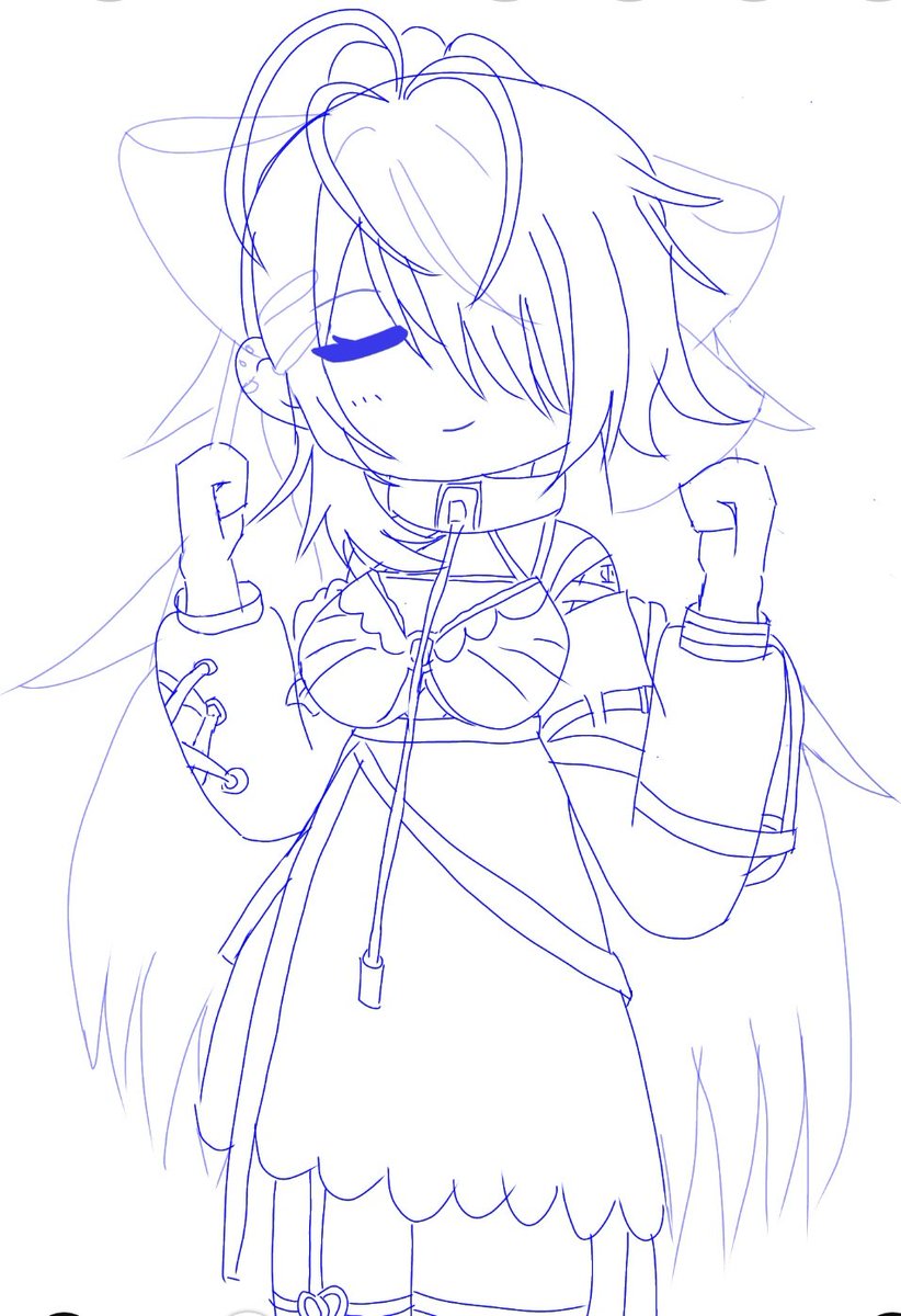 #ライjpg #九楽ライ 第2段階の下書き完了きゅ🐤 九楽の服はちょっと複雑で、左右非対称だから、これが仕上がっても、ポーズを変えたバージョンも描かないと踊ることが出来ないからきゅ…🐤 とりあえず今日はここまで…🐤 これからちょっとずつ仕上げていくきゅ♪🐤