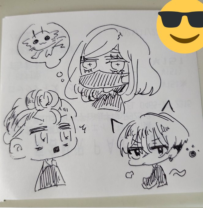 0 4 現実逃避で勤務中に落書きしてた 謎の生物を生み出すチョと初描きうろ覚えミチとちふゆ 21/11/23 00:10