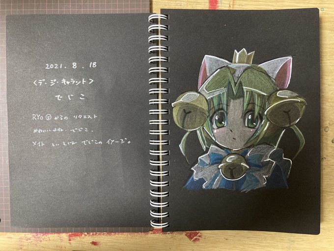 3 11 萌えなイラストってあんまり描くことないから新鮮。 でじこを描いたよ。 #黒地に色鉛筆 21/08/18 23:18