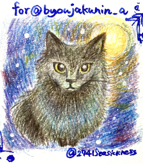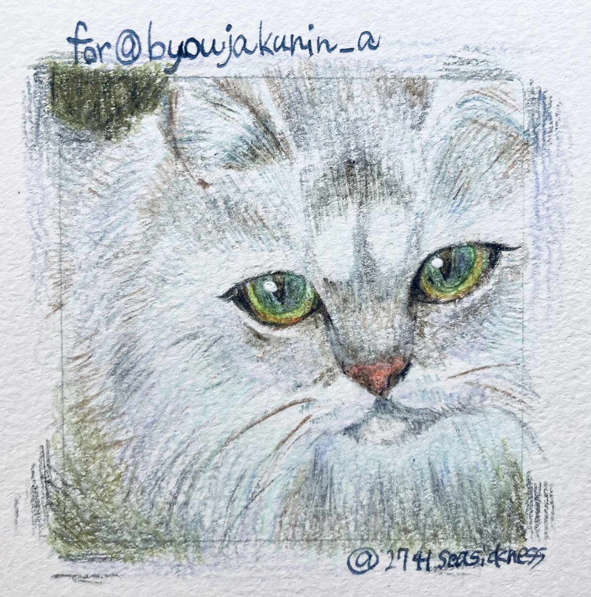 2 4 ペットを描かせてくださいその5 えーちゃんのネコ様その4 途中狼になったり、狐になったり、ハスキーになったり…したけど、猫になったような気がする\(^o^)/ 絵本っぽい感じで 思いつき生配信を覗いてくださった皆様ありがとうございました!(´ω`) #色鉛筆 #色鉛筆イラスト #動物イラスト 21/08/21 01:02