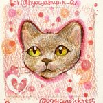 ペットを描かせてくださいその4 えーちゃんのネコ様その3 もっとポップにしたかったんだけど…むずかしい。 #色鉛筆 #色鉛筆イラスト #動物イラスト