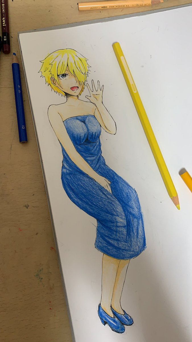 1 5 #イラスト好きな人と繋がりたい #イラスト #十文字アタリ #女体化 #色鉛筆 色塗り終わりました 20/08/28 00:21