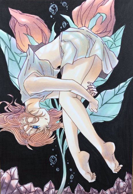 -溺れる- さすがにコピックで厚塗りは無理があったか…………、、、 #絵描きさんと繋がりたい #コピック