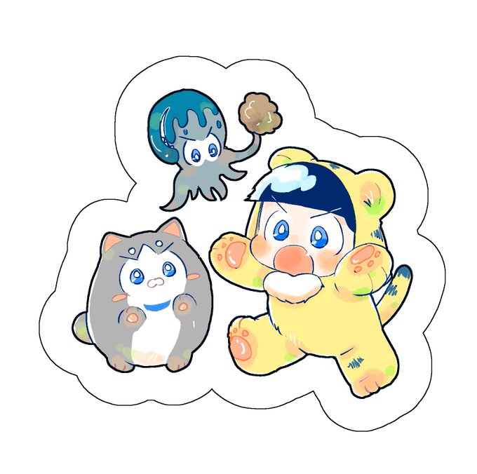 このシールのイラストに 文字を添えた絵本を家宝に出します~~~✌️ タイトル詐欺な内容です😂 twitter.com/2911maru/statu…