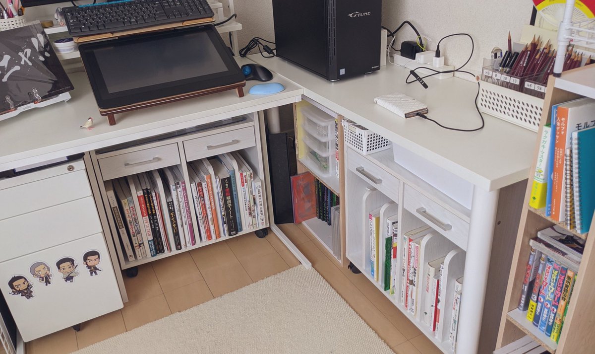 31 143 小さいお子様用ランドセルラックがあまりにも机の下にジャストサイズで、高さのある本が置けて引き出しもあり上の空間も実にちょうど良いことを報告いたします(左に別に本棚もあるのですぐ手に取りたい本を下に) 21/03/05 12:24