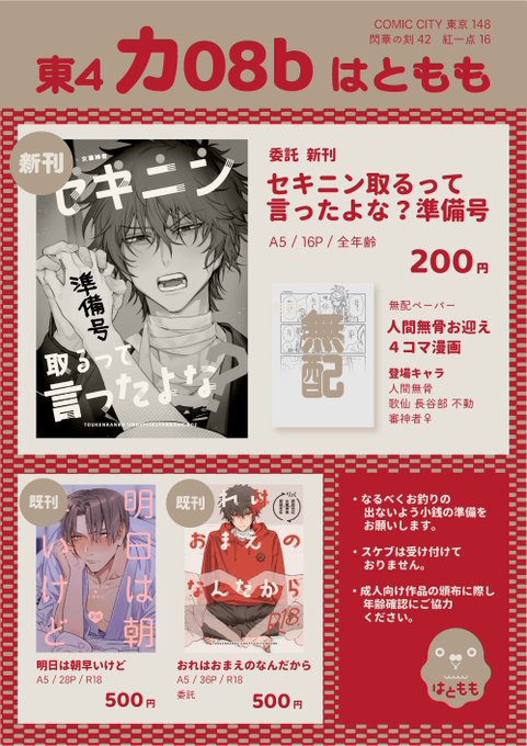 【サークル参加します!!】01月29日(東京)COMIC CITY 東京148内 紅一点 16| #イベントGO_赤ブー akaboo.jp/event/item/201… 既存絵使い回すために漫画みたいにコマ割って絵を入れちゃおう!って作ったらバチってるみたいになっちゃったバチってないです へしさにの無配とか置きたいねぇ〜