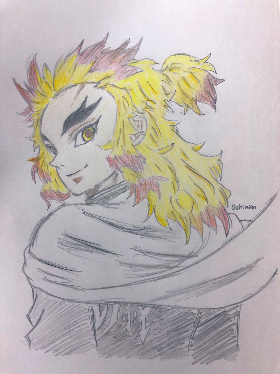 色鉛筆の色塗りも難しい~🥲 私の実力だとこんなもんか😅 ポンコツ模写だけど、愛は込めてるのよ~😭 練習あるのみ!!!!! 🔥さん模写、気付いたら9枚目だ!!! 記念すべき10枚目はどの🔥さんにしようかな🤔 #鬼滅の刃イラスト #模写 #鉛筆画 #煉獄杏寿郎 #煉獄杏寿郎イラスト