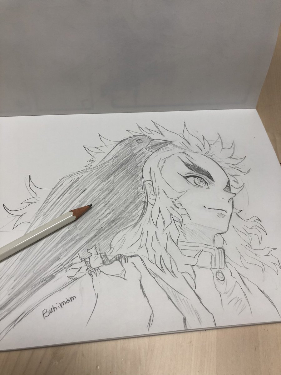 記念すべき10回目の模写は… (目だけは自分の好きに描いたけど笑) 「こんばんは煉獄さん」 初めての♾🚂鑑賞でこの🔥さんがスクリーンに出た瞬間、胸を衝かれました。 これからも、ずっとずっと大好きです #鬼滅の刃イラスト #煉獄杏寿郎 #模写 #鉛筆画 #こんばんは煉獄さん