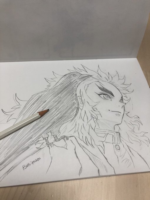 0 12 記念すべき10回目の模写は… (目だけは自分の好きに描いたけど笑) 「こんばんは煉獄さん」 初めての♾🚂鑑賞でこの🔥さんがスクリーンに出た瞬間、胸を衝かれました。 これからも、ずっとずっと大好きです #鬼滅の刃イラスト #煉獄杏寿郎 #模写 #鉛筆画 #こんばんは煉獄さん 21/09/06 23:49