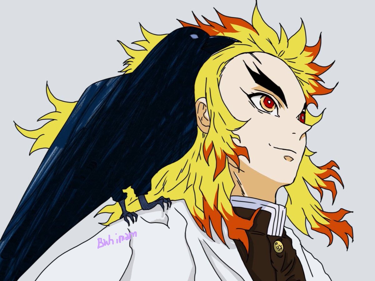 今日の模写に色塗りしてみました🙌 使い方わからず、塗りつぶしては消し、はみ出しては消し😂 何度🔥さんの顔が赤や黄色になったことか😱 頑張ったので、見て頂けると嬉しいです!! いいねやRTは泣いて喜びます😭✨ #煉獄杏寿郎 #鬼滅の刃イラスト #模写 #無限列車編 #煉獄杏寿郎イラスト #練習中