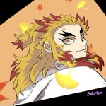 先日の模写煉獄さん、秋っぽくしてみた🍁 レイヤー? 投げ縄?グラデーション? 難しい… 末っ子におんぶに抱っこで教えてもらってる母(笑) #煉獄杏寿郎 #鬼滅の刃イラスト #模写 #煉獄杏寿郎イラスト #練習中