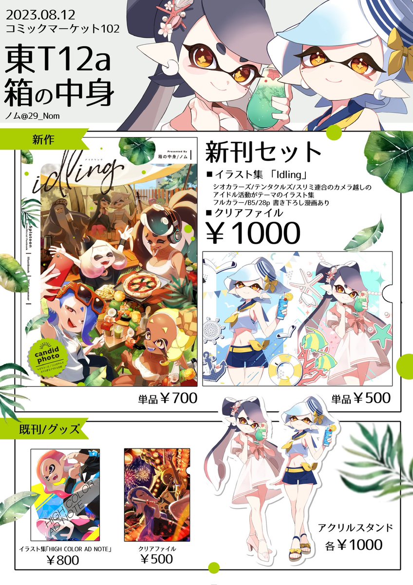 明後日のコミックマーケット102のお品書きです。 東T12a 「箱の中身」でお待ちしております。 新刊はアイドルのみんなが私服でキャッキャしてるイラスト本です。どうぞよろしくお願いします。