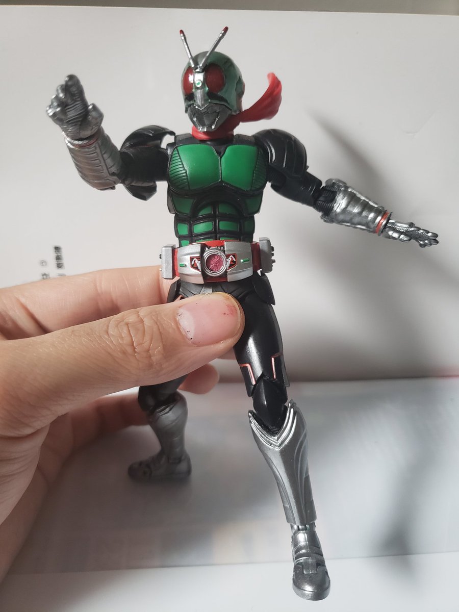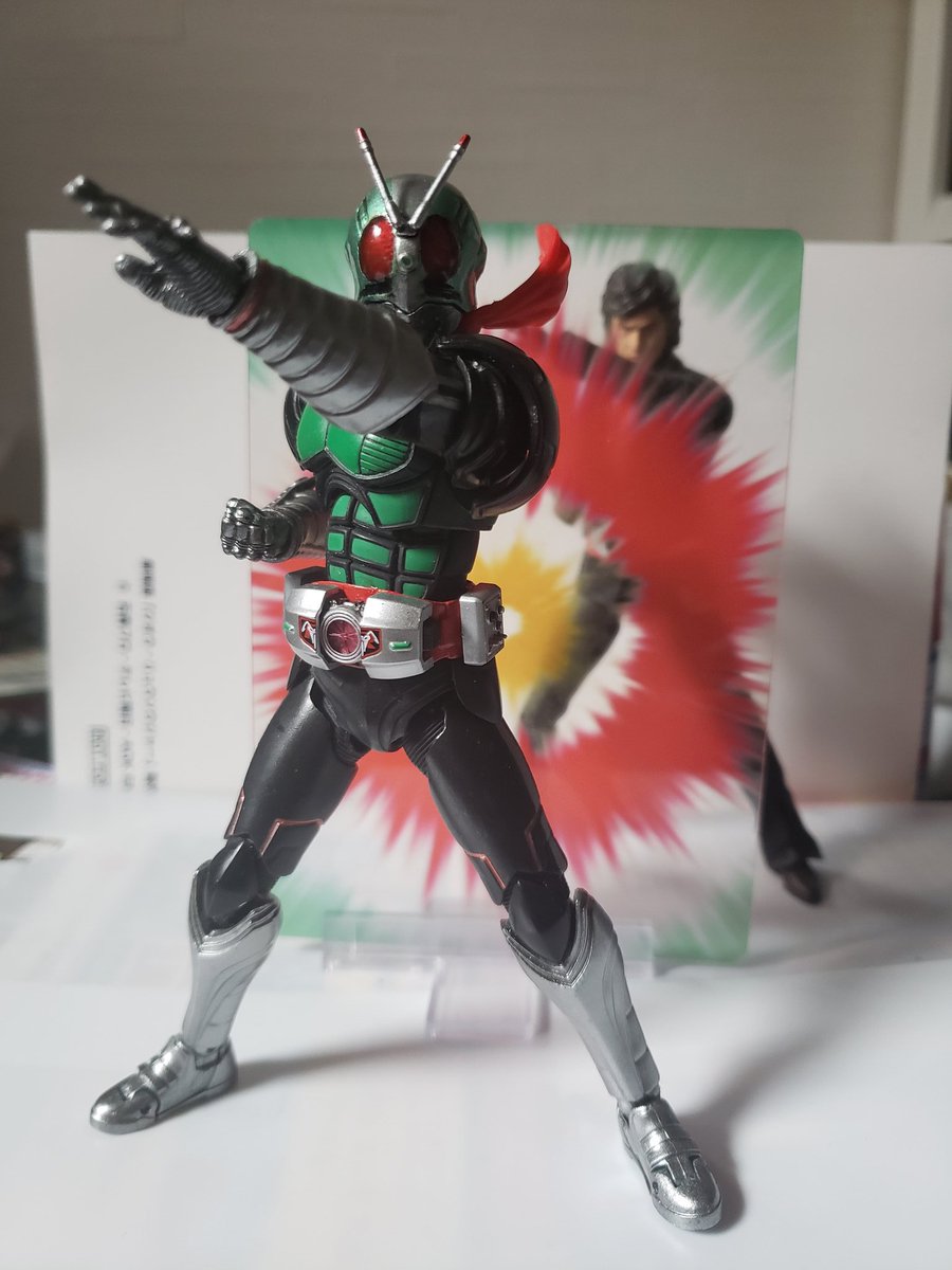 初めて作りろうと思えた作品って、なんだかんだ一番思い入れあるんだよな にしても、光の感じとか、写真って難しいなぁ( ̄▽ ̄;) 名前は…仮面ライダー真1号にしよっかな #フィギュアーツ #ニチアサフィギュア改造部 #仮面ライダー1号 pic.twitter.com/r722YNI1IF