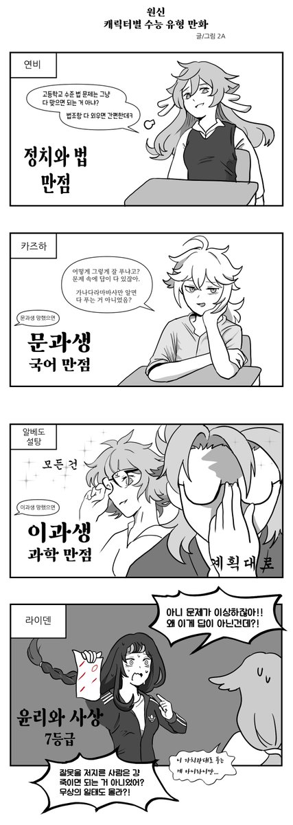 수능 원신 캐릭터별 유형 만화 2 #원신
