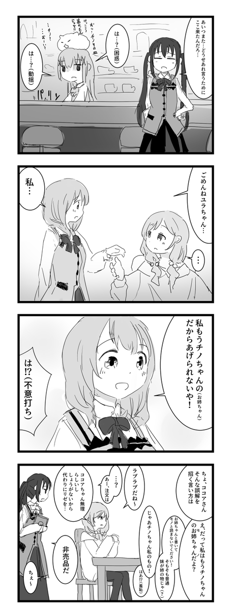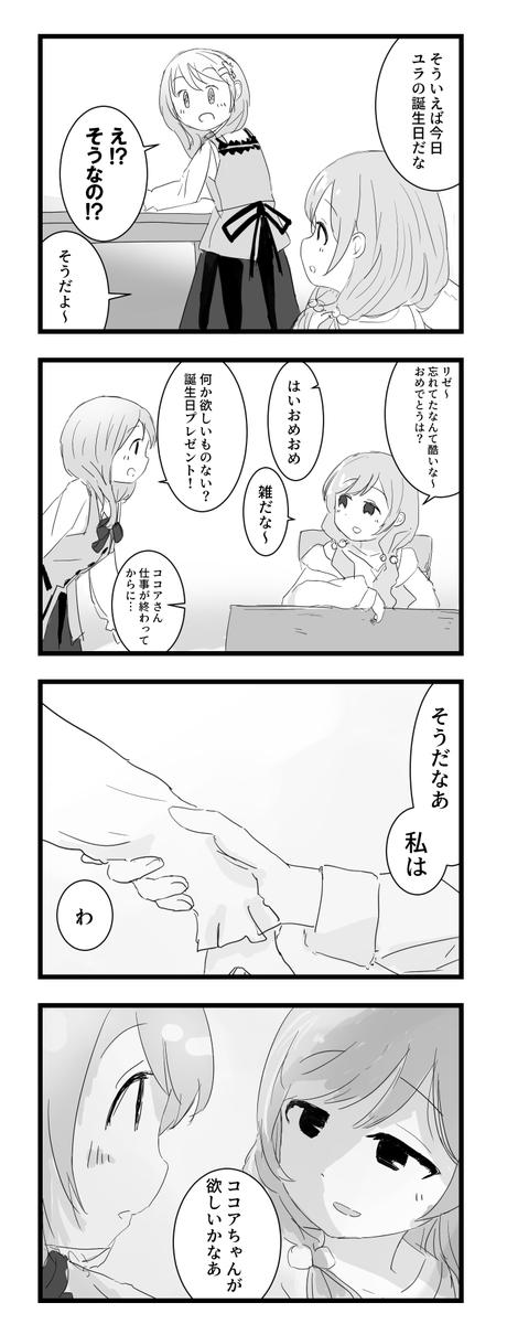 シャロお誕生日絵の後日談的リゼシャロ(?)4コマ×4 #gochiusa twitter.com/2Doroni/status…