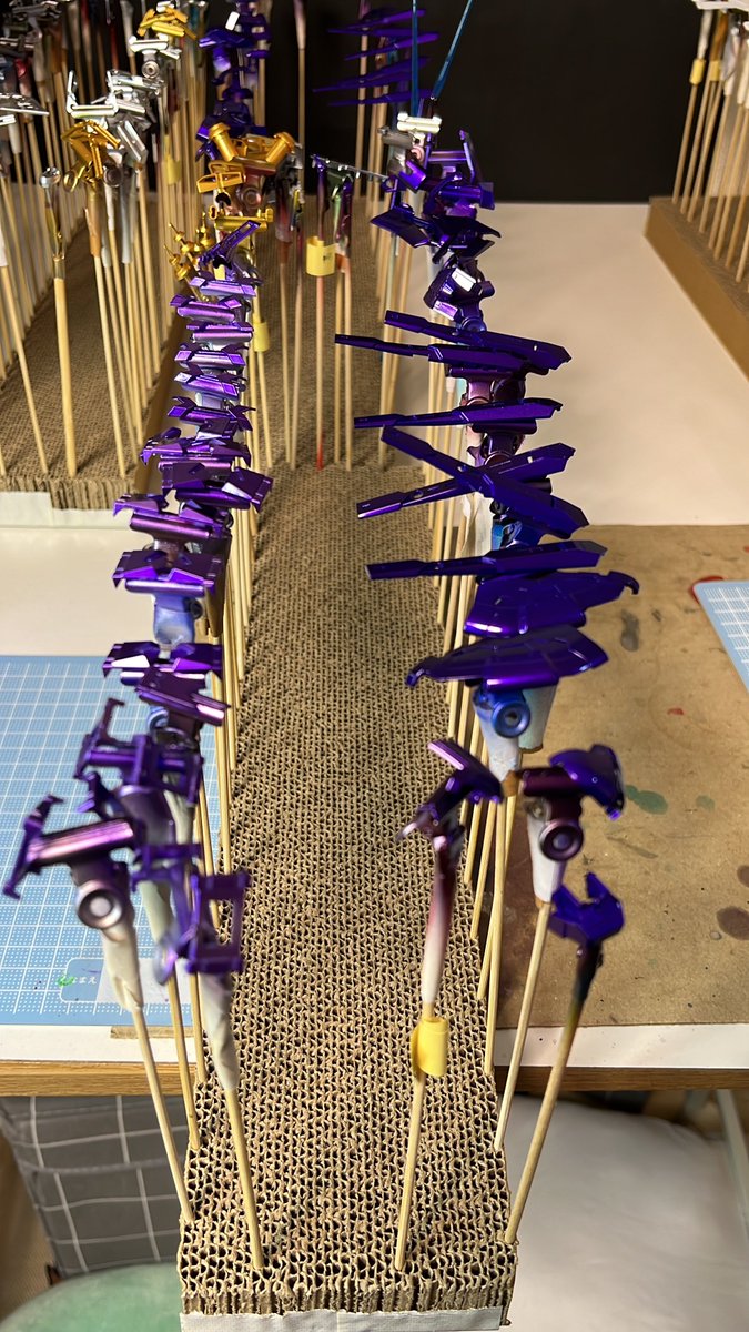 #ガンプラ RG Hi -νガンダム完成! 個人的に紫のイメージなので メタリックバイオレットからのクリアバイオレットで紫マシマシカラーに! ホワイトはパールシルバーで塗った感プラスパール感! マッシブでカッコよ!なキットでした。 #うみんちゅ杯2022春 参加したいです! よろしくお願いします!!