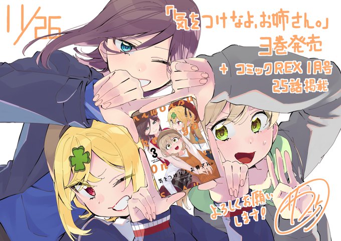 本日は『気をつけなよ、お姉さん。』3巻の発売日です! 同日発売のコミックREXに3巻の続きである25話もセンターカラーで掲載されています! よろしくお願いします〜!