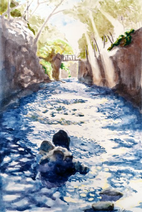 おはようございます! あけましておめでとうイラスト②でございます(笑) 奥多摩 氷川渓谷 #あけましておめでとうございます #奥多摩 #水彩画 #アナログイラスト #イラスト好きな人とつながりたい