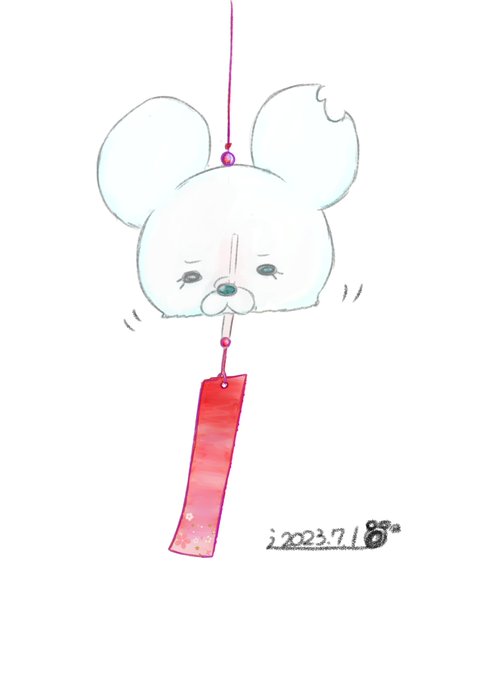 #名もなきねずみ #チュー象画 ねずみさんの風鈴 絶対、耳の部分、作れなさそう(笑) 後から付ければイケるのか?! いや、それよりも口元のふっくら感とか難しいだろうなぁ 今日のお題「風鈴」 #pixiv今日のお題
