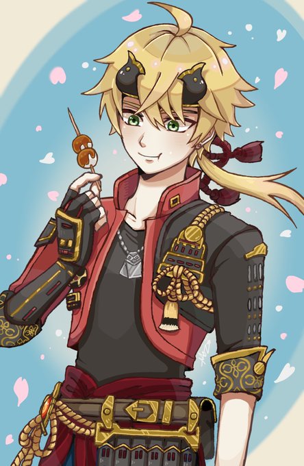 トーマ🔥なんとか完成だぁ!🍡🌸 #原神 #GenshinImpact #指描き #イラスト