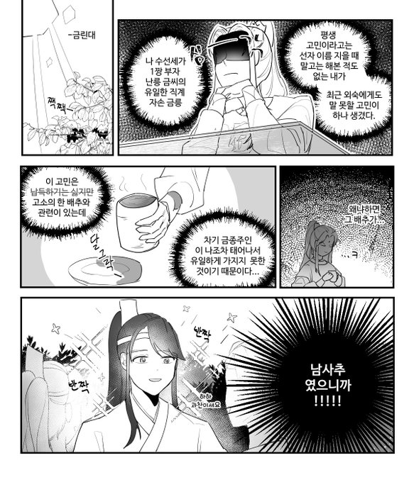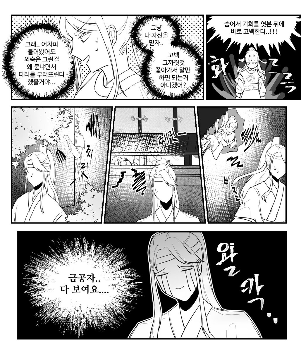 ⚠️4권 약스포 주의⚠️ 연성교환으로 그린 사금 날조만화,, 원래 주제는 고백하려고 사추 따라다니는 금릉이었는데 걍 재미없는 개그만화 돼버렸다 #마도조사 #MDZS #魔道祖师 #사추금릉